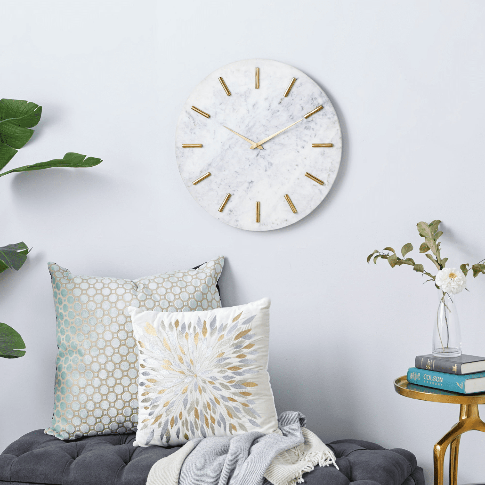 Cosmoliving by cosmopolitan 20" white marble wall clock with gold accents makes a perfect addition to any home