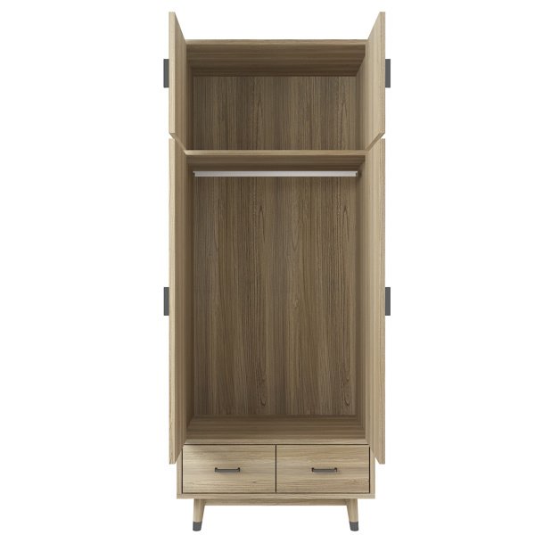Density board pasted with triamine 9398-1 oak color black copper feet 4 doors 2 drawers with clothes rail wooden wardrobe