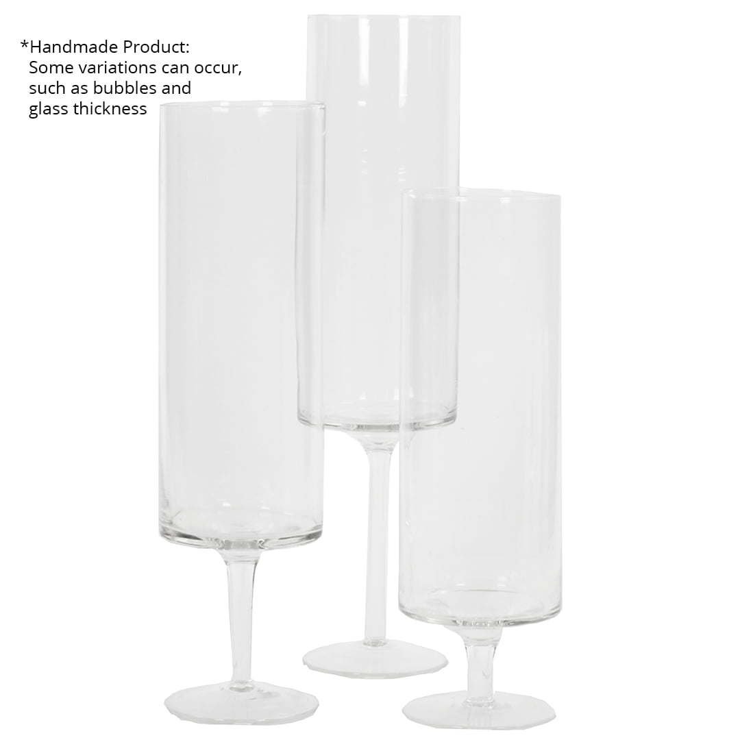 DIY Wedding Koyal Wholesale Pillar Candle Hurricane Pedestal Holders, Tall Glass Pedestal Candle Holders Centerpiece, Wedding Glass Stem Hurricanes Set of 3 (Clear, 3.7 x 11.8, 13.7, 15.7)