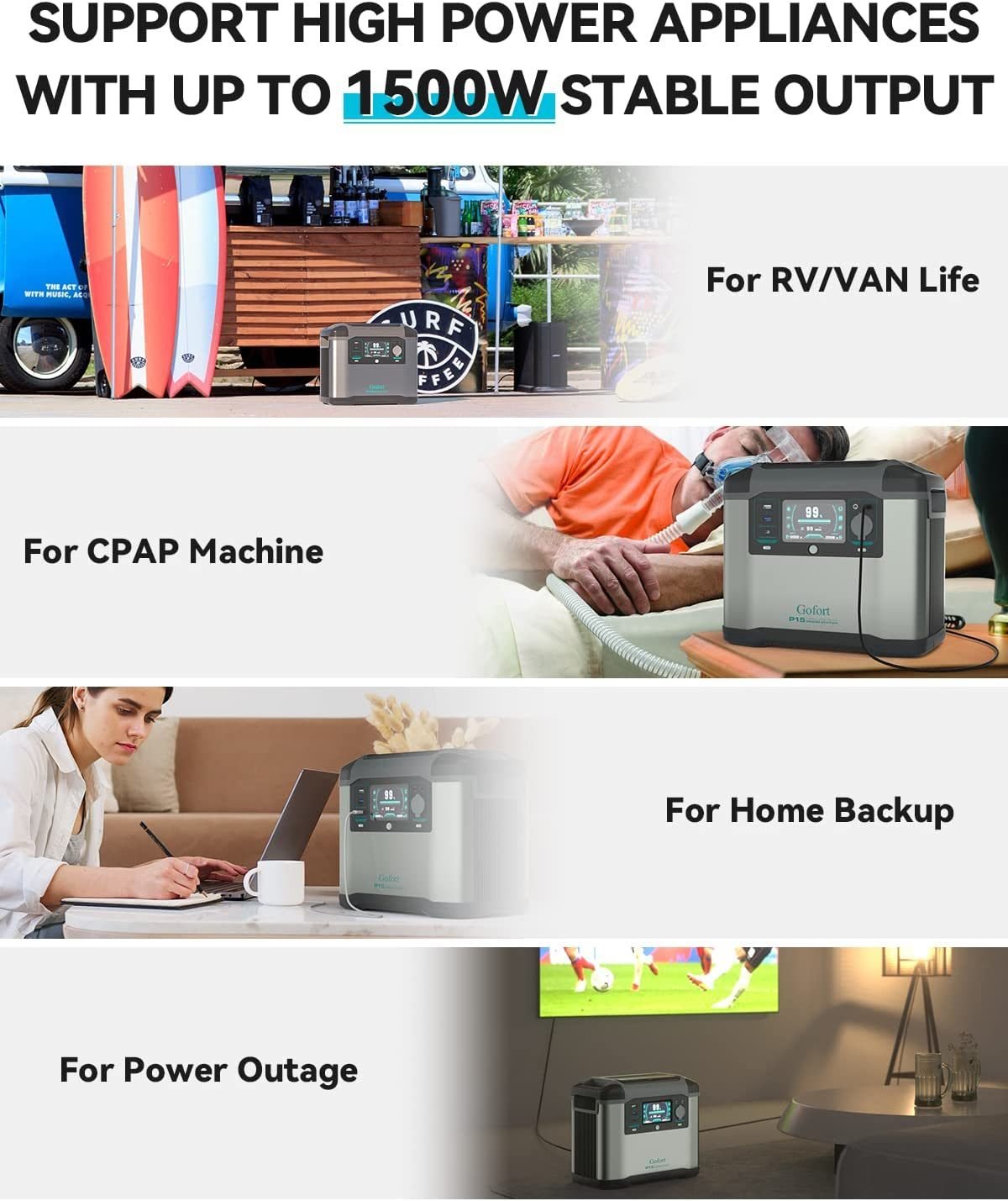 Home > GOFORT 1500W Portable Power Station 1008Wh Solar Generator; Recharge 0-80% Within 1 Hour; E-VSZ Mode Up To 2500W; E-UPS; Portable Solar Power Statio
