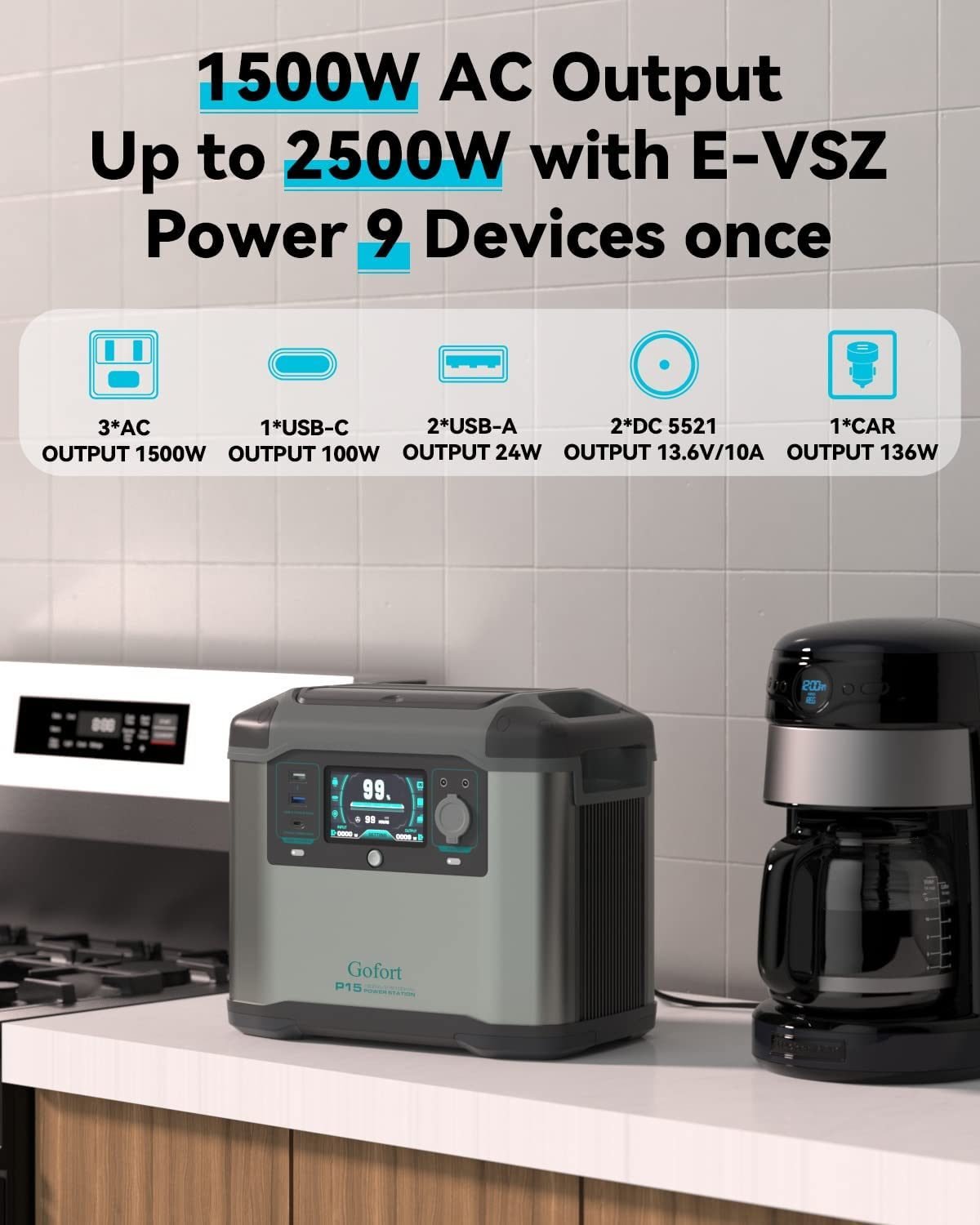GOFORT 1500W Portable Power Station 1008Wh Solar Generator; Recharge 0-80% Within 1 Hour; E-VSZ Mode Up To 2500W; E-UPS;  Portable  Solar Power Statio GOFORT 1500W Portable Power Station 1008Wh Solar Generator; Recharge 0-80% Within 1 Hour; E-VSZ Mode Up To 2500W; E-UPS;  Portable  Solar Power Statio GOFORT 1500W Portable Power Station 1008Wh Solar Generator; Recharge 0-80% Within 1 Hour; E-VSZ Mode Up To 2500W; E-UPS;  Portable  Solar Power Statio GOFORT 1500W Portable Power Station 1008Wh Solar Generator; Recharge 0-80% Within 1 Hour; E-VSZ Mode Up To 2500W; E-UPS;  Portable  Solar Power Statio GOFORT 1500W Portable Power Station 1008Wh Solar Generator; Recharge 0-80% Within 1 Hour; E-VSZ Mode Up To 2500W; E-UPS;  Portable  Solar Power Statio GOFORT 1500W Portable Power Station 1008Wh Solar Generator; Recharge 0-80% Within 1 Hour; E-VSZ Mode Up To 2500W; E-UPS;  Portable  Solar Power Statio