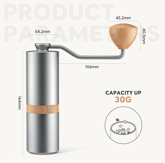 SKU: PSGM2213. Hand-shaking coffee bean grinder. (Bean warehouse large capacity 30g, multi-gear grinding control coffee powder specifications)