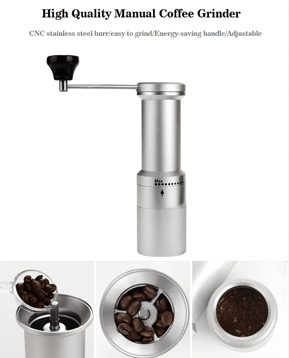 Hand-shaking coffee bean grinder. (Bean warehouse large capacity 45g, multi-grade grinding control coffee specifications; American / Italian / French)