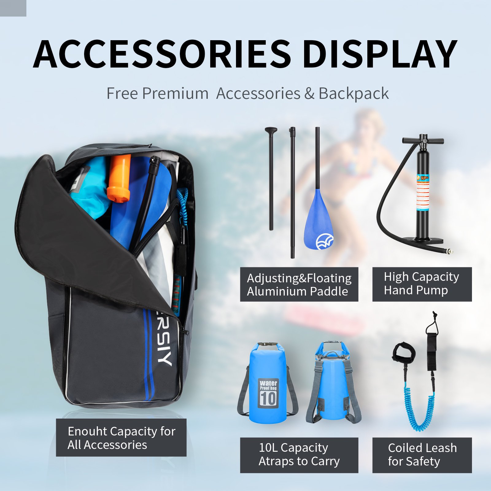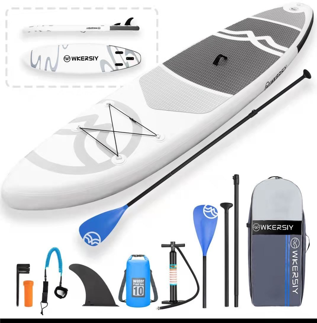 - Wkersiy sup offers you a complete stand-up paddle board with 10L sup waterproof bag, safety leash, Aluminum adjustable paddle. Also, double-action blow-up air pump, repairing kit & big travel bag are included in wkersiy sups. Once you arrive at your destination, you can quickly inflate your board with the inflatable stand-up paddle board pump. The method of installing fins is simple: slide in and clip, no tool needed. [Quality paddle board for adults & family]