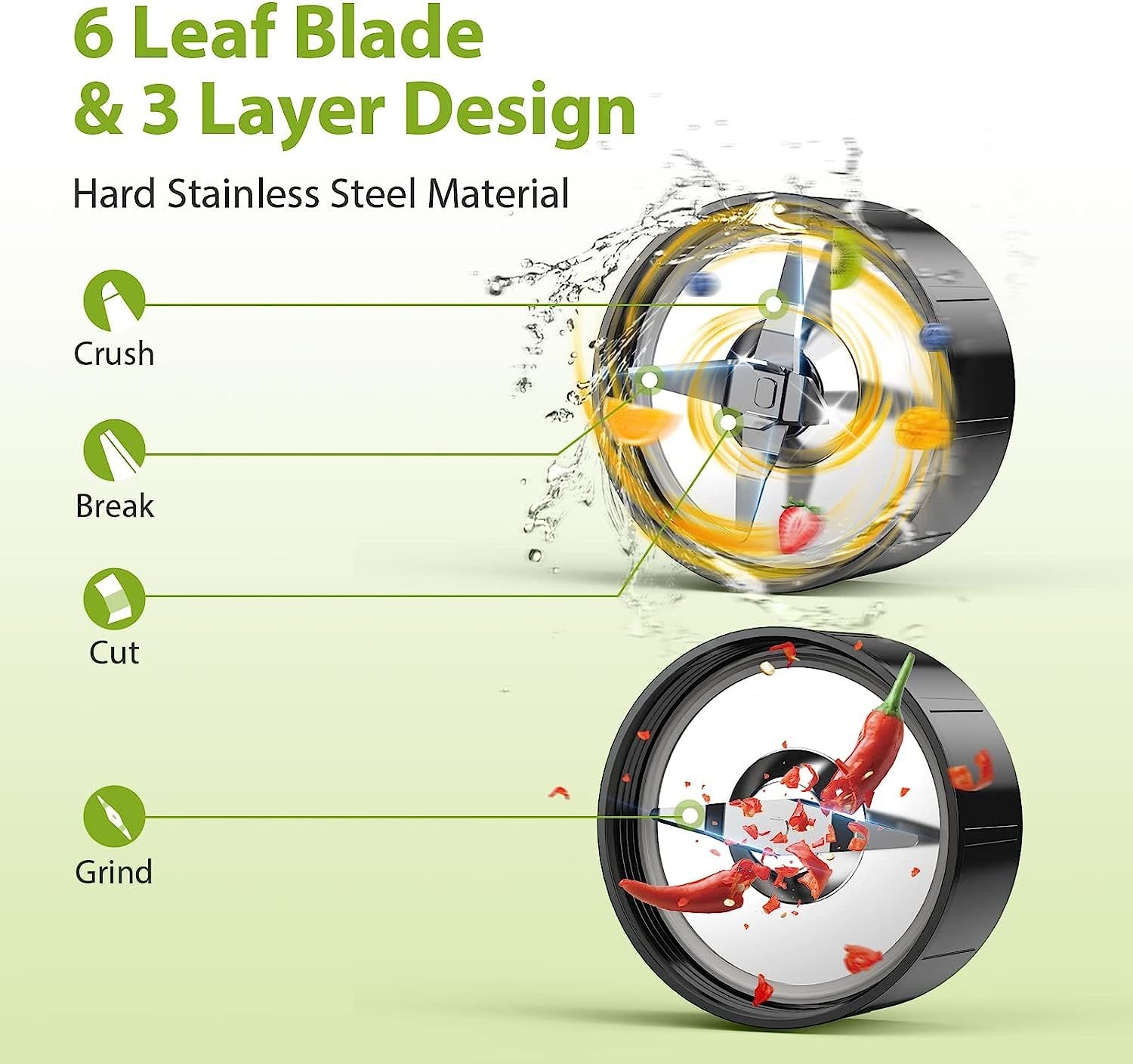 1.Powerful Countertop Blender:Efficient personal smoothie maker with engine output up to 850 watt motor reaches 23,000 RPM for high speed breaking, powerful enough to easily blend fruits, Nuts, coffee beans, ice cubes and more. Making healthy shakes and smoothies, sporty protein drinks, baby food puree, fruit and vegetable juice, grinding coffee, spice, and beans...