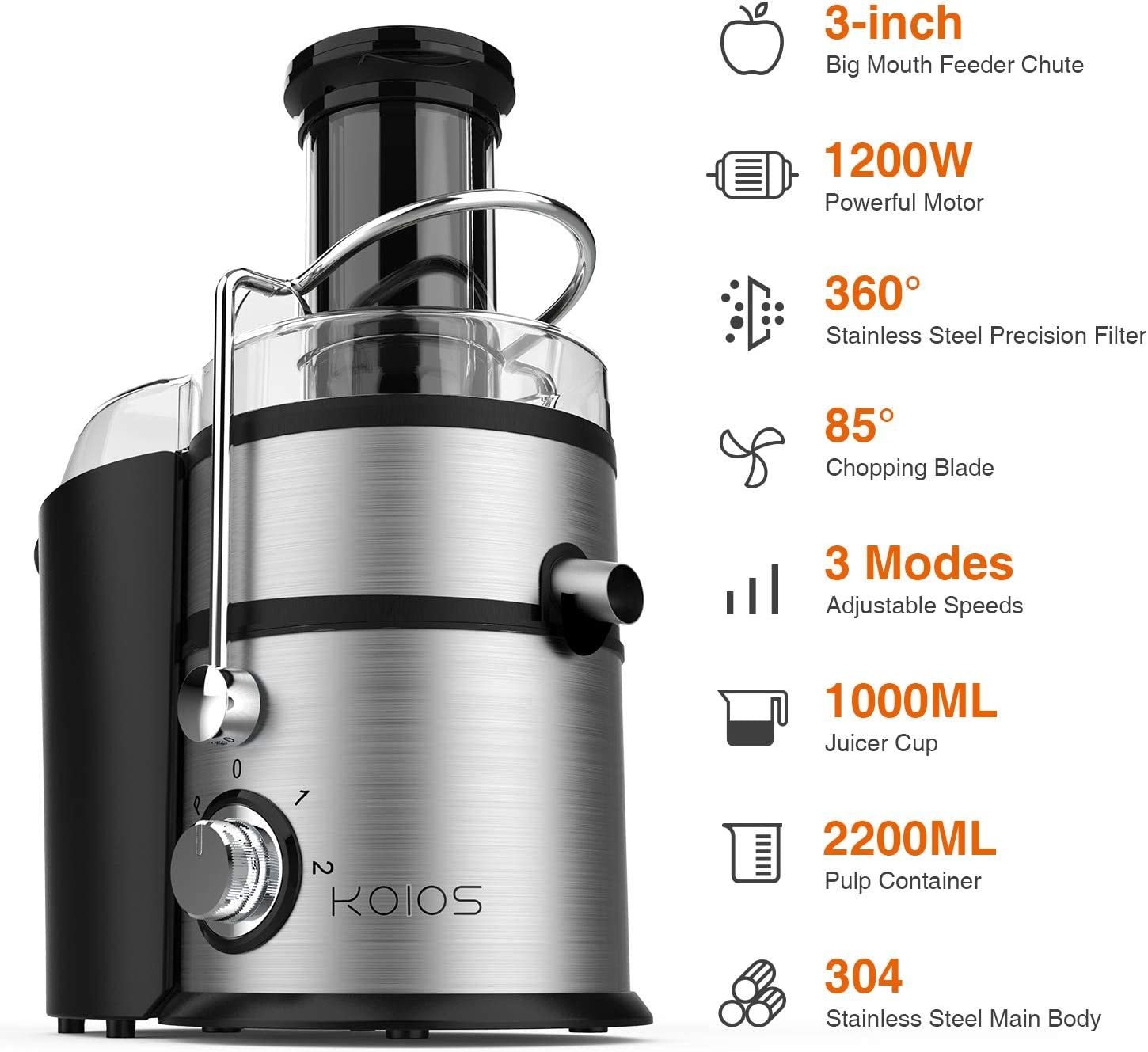 Home > KOIOS Centrifugal Juicer Machines; Juice Extractor with Extra Large 3inch Feed Chute Filter; High Juice Yield for Fruits and Vegetables; Easy to Cl