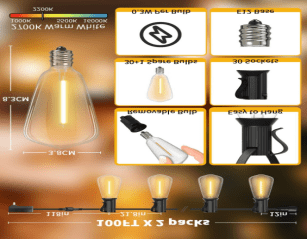 UL market: ST40 LED bulb string lamp has C9 / E17 middle base, a total of 22 bulbs (2 standby), 0.6 watt / 120 volt bulbs. Edison-led light bulb strings are perfect for outdoor parties, Christma, terrace, deck, yard, dining room, porch, garden, terrace, pergola, cafe decoration