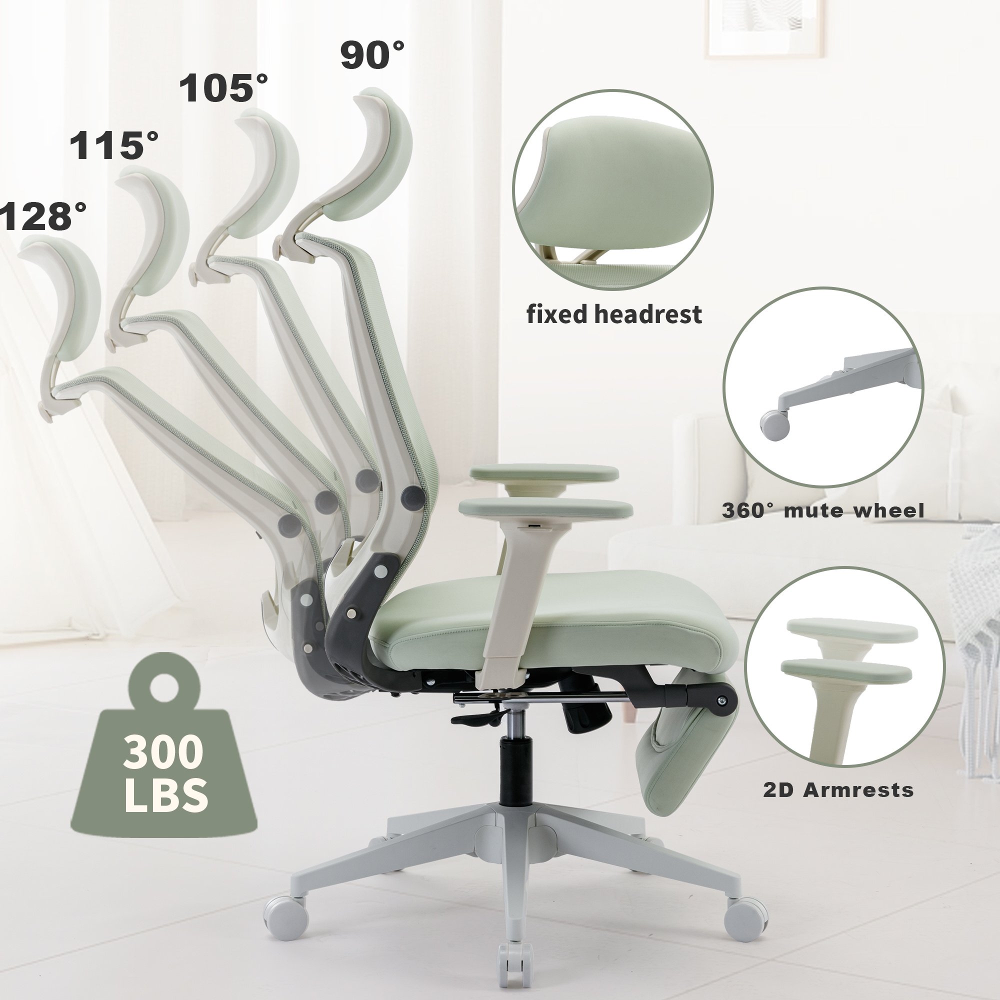 4.4. 90 ° - 128 ° tilt tension, any angle locking function.