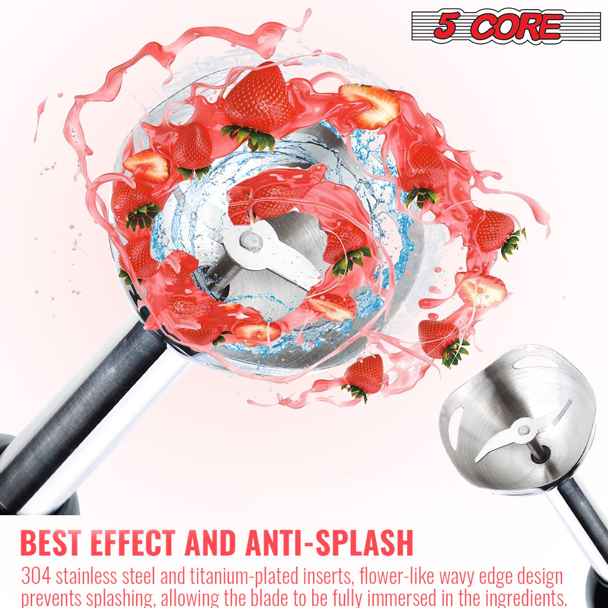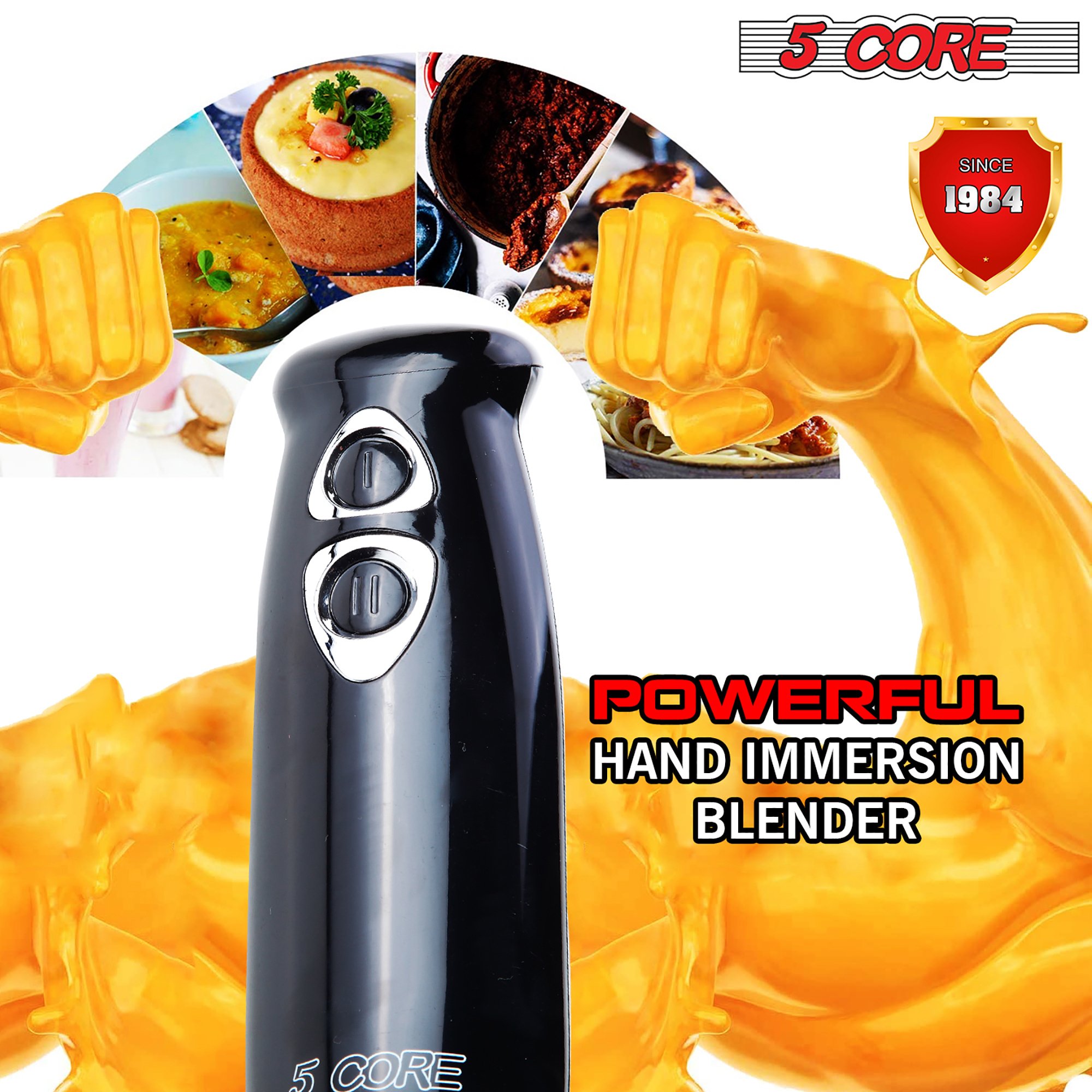 5 Core Handheld Blender, Electric Hand Blender 500W, Immersion Hand Held Blender Stick with Food Grade Stainless Steel Blades for Perfect for Smoothies, Puree Baby Food & Soup