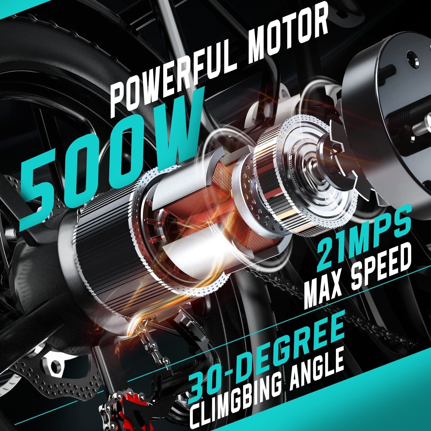 3.500W Powerful Brushless Motor: 20K6 folding electric bike comes with a permanent magnet DC brushless hub motor. The 20-inch 500W spoke motor brings the ultimate experience. The maximum power can reach 750W, so you can easily climb slopes ≤ 25° and reach 20 Mph. Max load: 300lbs.