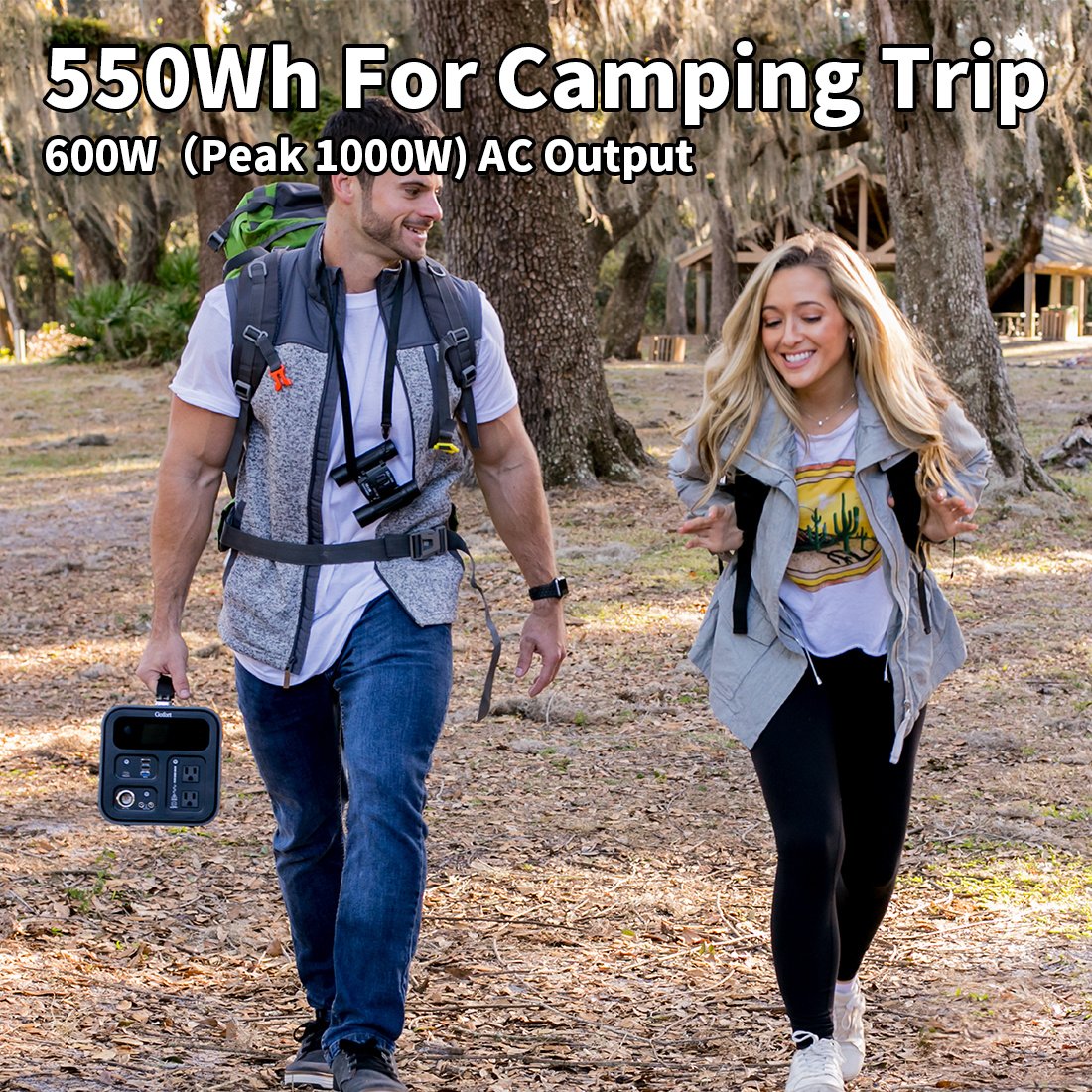 [550Wh Battery Power Outdoors]Featured 550Wh large capacity and weighted only 15lbs. Simply plug in and switch on to charge your smart phone; laptop; Jones; camera; etc. If you are going to a camping trip or excursion; take along Gofort UA550 power station to charge your outdoors for hours or days.