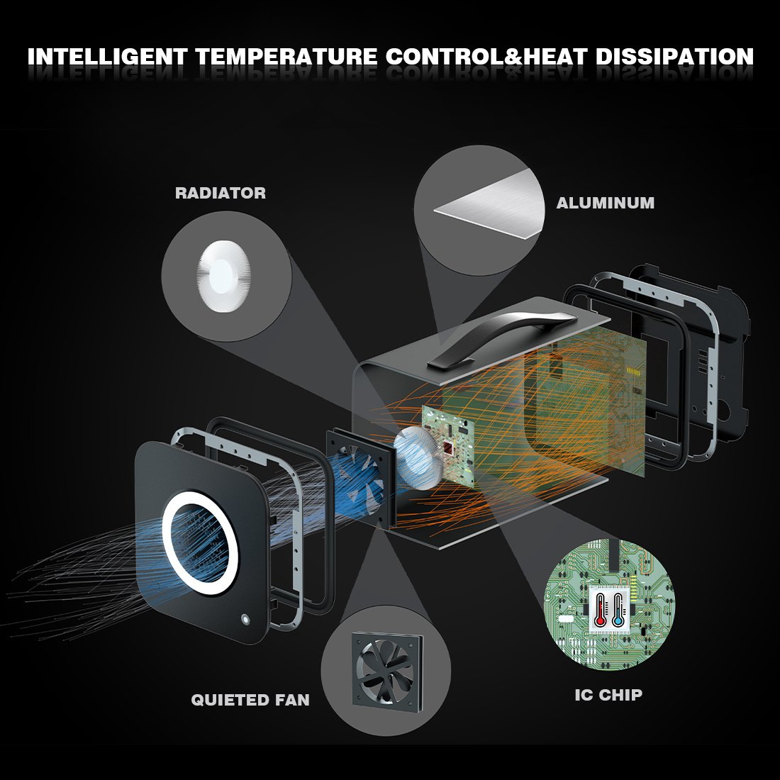 [BMS& Intelligent Temperature Control]Equipped with battery management system protecting the Gofort UA550 from short circuit; overload; overheating; over current and overcharge; built-in radiator; IC chip control; silent cooling fan and heat dissipation featured pure aluminum shell will prolong battery service life and improve battery performance to a great extend.