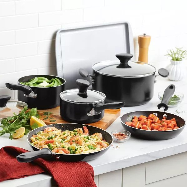 Includes: 4.25 Quart Dutch Oven With Lid, 1 qt. Saucepan With Lid, 8" Skillet, Pasta Fork, 1.5 qt. Saucepan With Lid, Whisk, Slotted Spoon, Ladle, 10" Skillet, 9 x 13 Inch Baking Pan, Slotted Turner, Spoon
