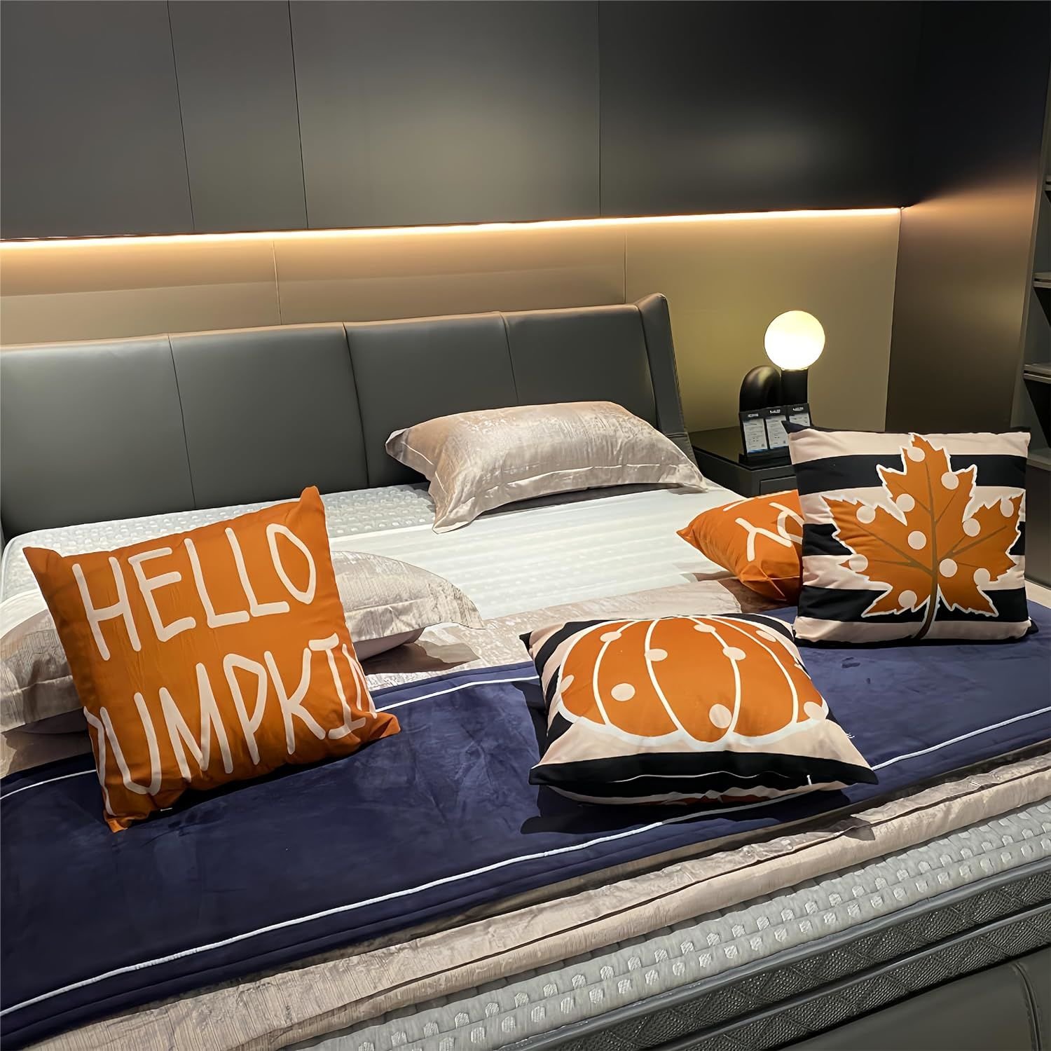 Pumpkin Throw Pillow Covers, 18 x 18 Inch Autumn Thanksgiving Harvest Polka Dot Maple Leaf Decorations for Sofa Couch Set of 4