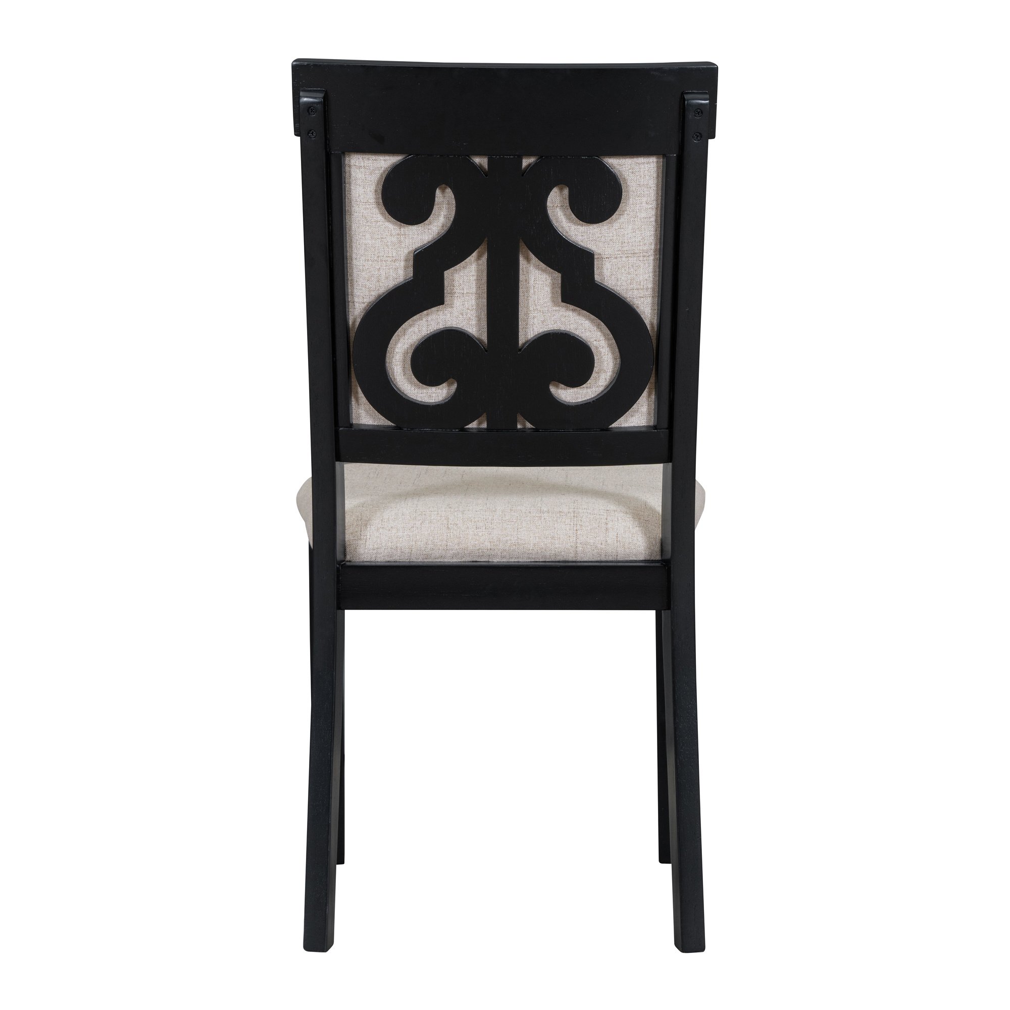 Retro StyleThe retro dining set comprises one dining table and four matching upholstered chairs, blending understated elegance with a rich vintage feel. The table legs and backrests of the chairs feature symmetrical hollowed-out carving patterns. It's available in two colors, black and brown and white. No matter which color dining set you choose, it will be the crowning touch of your restaurant.