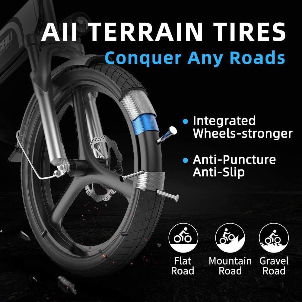 5.Magnesium alloy one-piece tire ‚òÖ20"*1.75" thickened explosion-proof pneumatic tires, non-slip and wear-resistant, strong grip, and more shock-absorbing and comfortable riding. ‚òÖMagnesium alloy integrated wheel hub replaces the spoke wheel, low impact force, reducing the trouble of adjusting the spoke wheel.