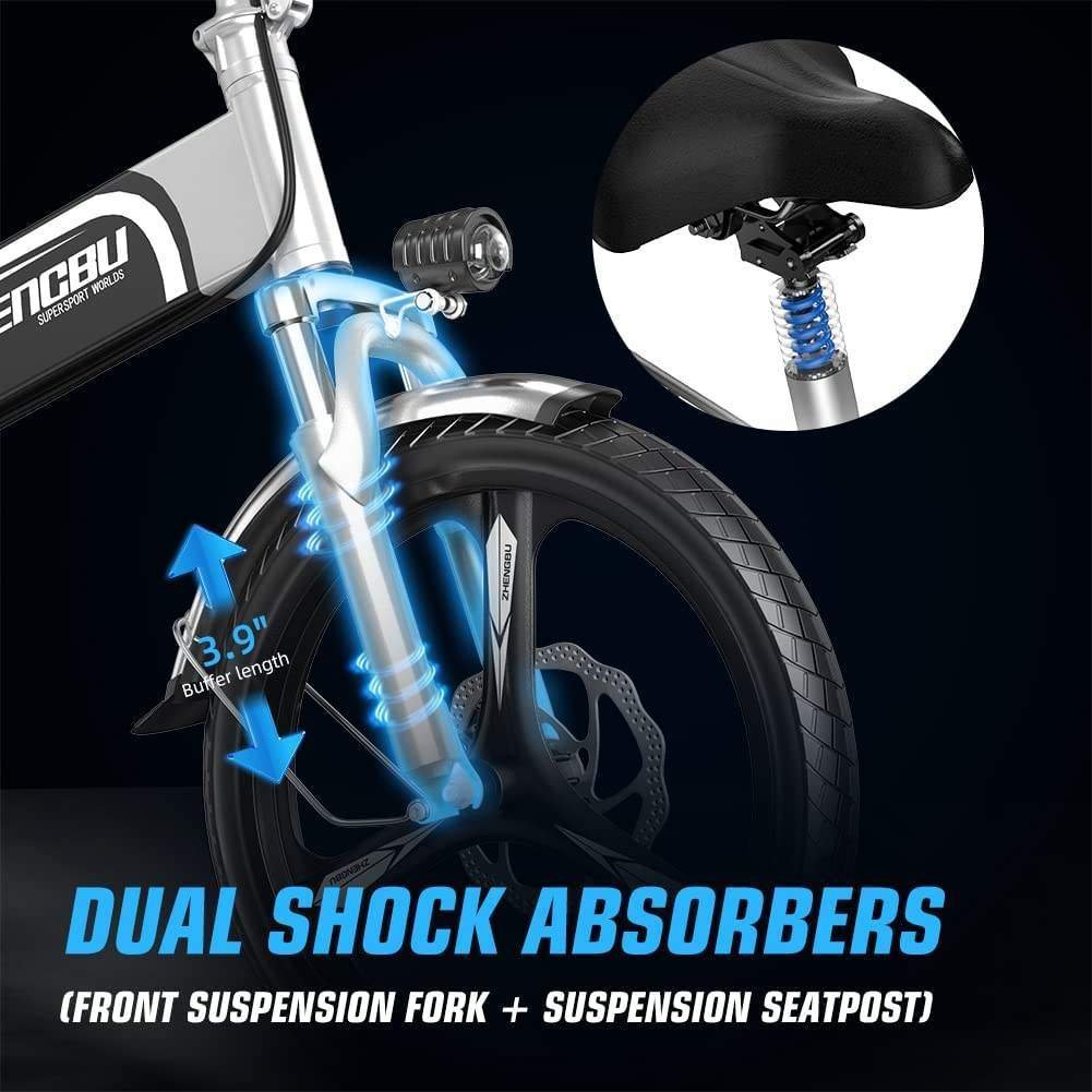 3.Double shock absorption ‚òÖUrban electric bickes are equipped with highly flexible aluminum alloy front forks and shock-absorbing seat tubes. ‚òÖIt can help you easily climb various terrains and provide you with greater traction on rough or loose surfaces. Perfectly protect your riding from bumps and provide a comfortable riding experience.